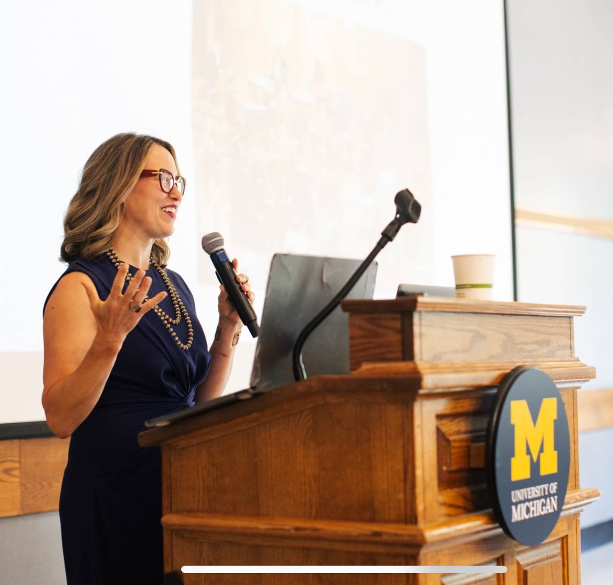 She's a Michigan alum and executive leadership coach at the University of Michigan's Ford School of Public Policy.